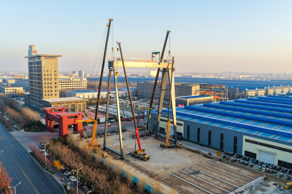 On November 29th, the main beam of the 2000t gantry crane test platform of Henan Mining was successfully lifted at the company's intelligent industrial park.